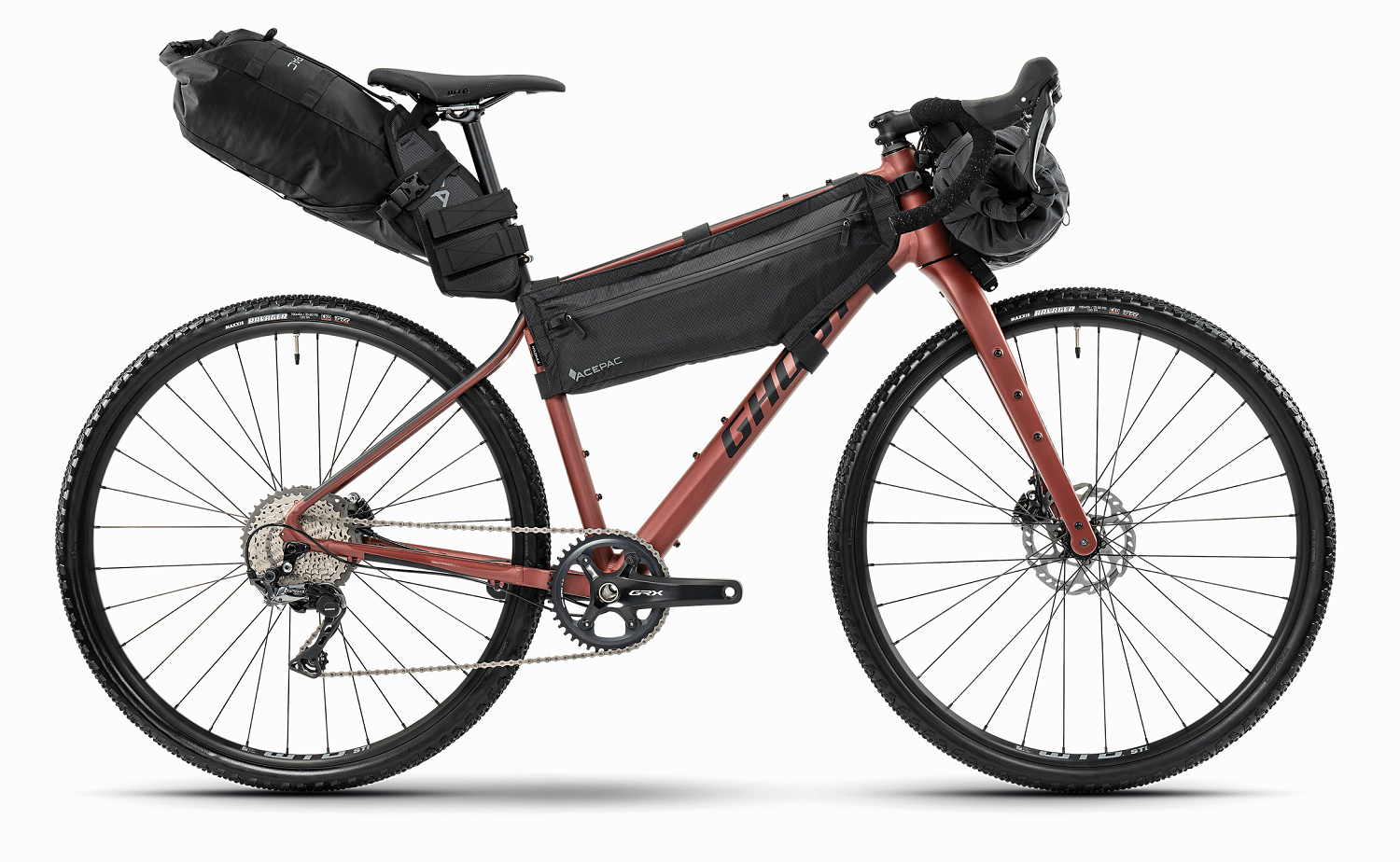 GHOST Asket prináša nový a svieži vietor medzi gravel-bikami. Postavený na hliníkovom, viac uvoľnene a dobrodružne pojatom ráme a pevnej karbónovej vidlici ponúka štandardné gravelové obutie Maxxis Ravager 700x40c. Vďaka dlhšej vidlici má vyššie položené hlavové zloženie, zatiaľ čo zadná časť rámu sa znateľne zvažuje. Hravá geometria priamo nabáda k otestovaniu na štrkovom teréne. Jeho výbavu tvorí pohon Shimano GRX 1×11 prevodov a výkonnej brzdy Shimano. Variant EQ sa navyše chváli kompletnou sadou tašiek pre bikepacking. Osedlajte Asket a vyskúšajte jeho stabilitu a odolnosť!