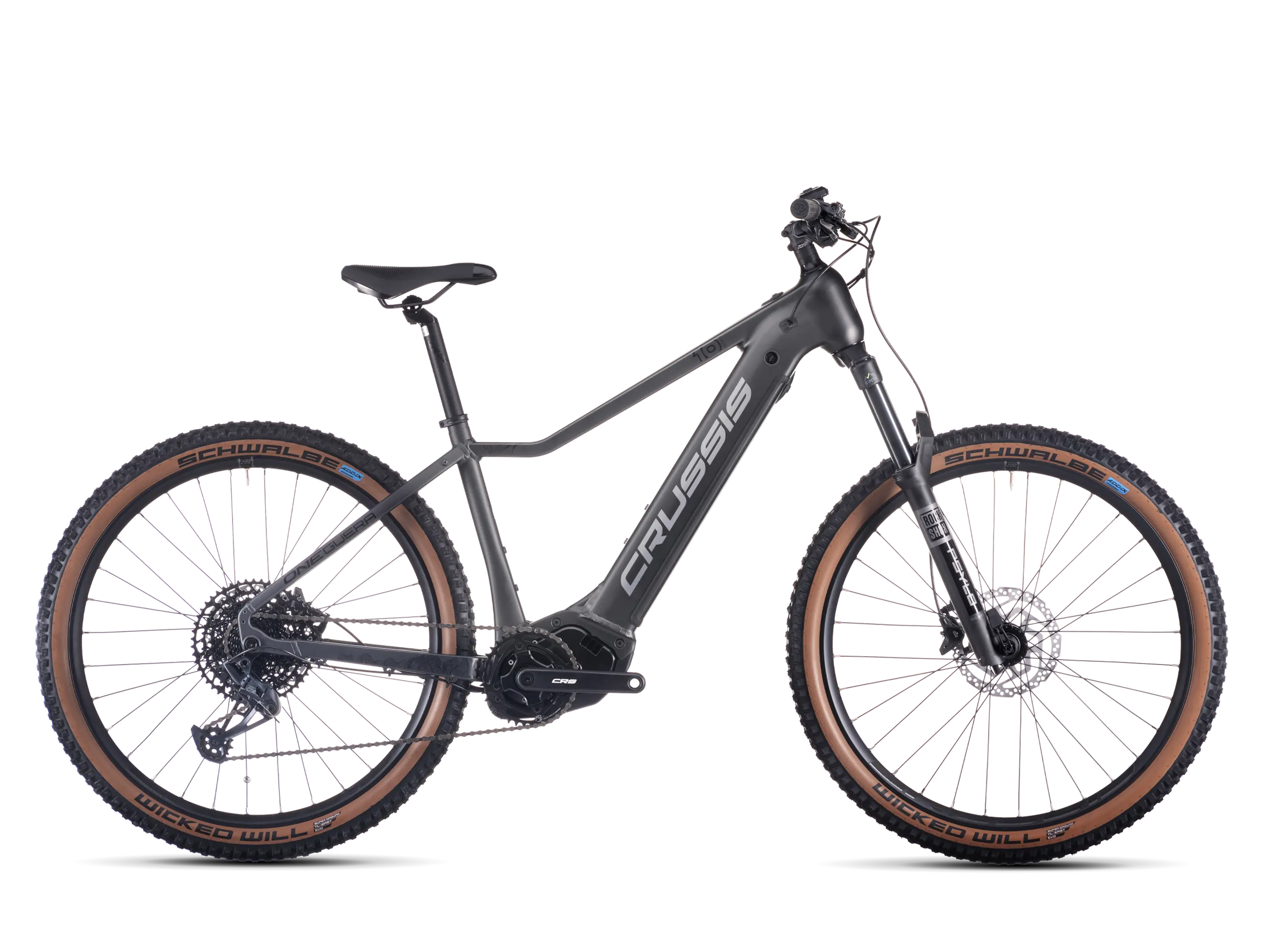 ONE-Guera 10.10-(900 Wh) sa môže pochváliť odpruženou vidlicou ROCKSHOX FS Psylo Silver RC Solo Air 27,5″ BOOST, ktorá zaručuje plynulú jazdu aj v náročnom teréne. S 12-rýchlostným pohonom SRAM GX Eagle sa ľahko prispôsobíte akémukoľvek terénu. Jeho vysokokvalitný hliníkový rám vo veľkosti 17″ a 19″ zaručuje odolnosť, zatiaľ čo 27,5″ kolesá s plášťami SCHWALBE Wicked Will Evo poskytujú vynikajúcu priľnavosť a stabilitu na ceste aj v teréne.